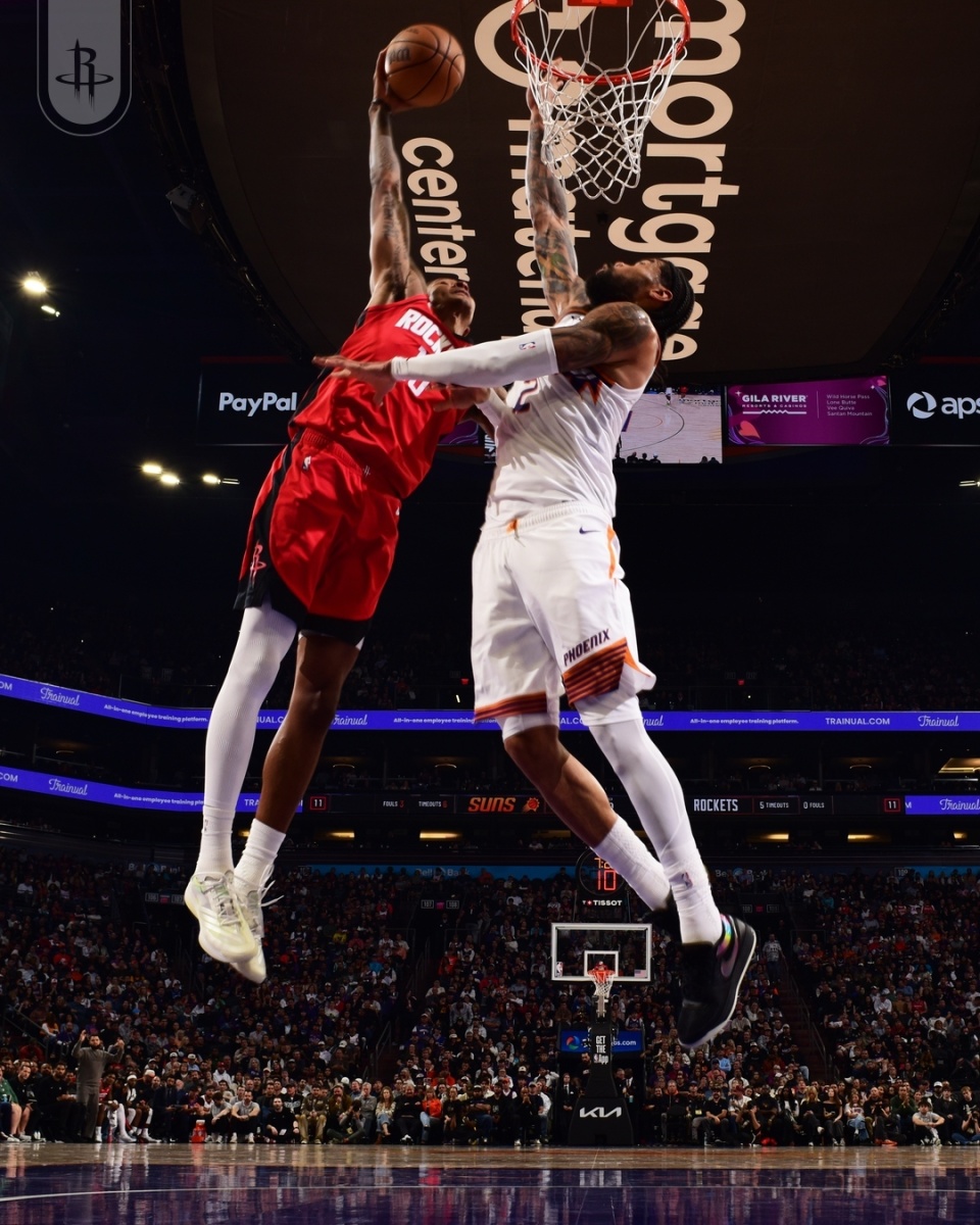 末节火箭不仅顶住压力,而且霍勒迪、小史密斯和阿门接连轰进4记三分,瞬间领先到19分,期间阿门补防时被理查兹肘击到下巴,而且后脑勺磕到地板,火箭挑战失败,所幸阿门的身体没事;比赛继续,霍勒迪再拿2分,太阳继续抵抗却无济于事,比赛还剩3分08秒太阳提前投降,最终火箭拿下比赛。