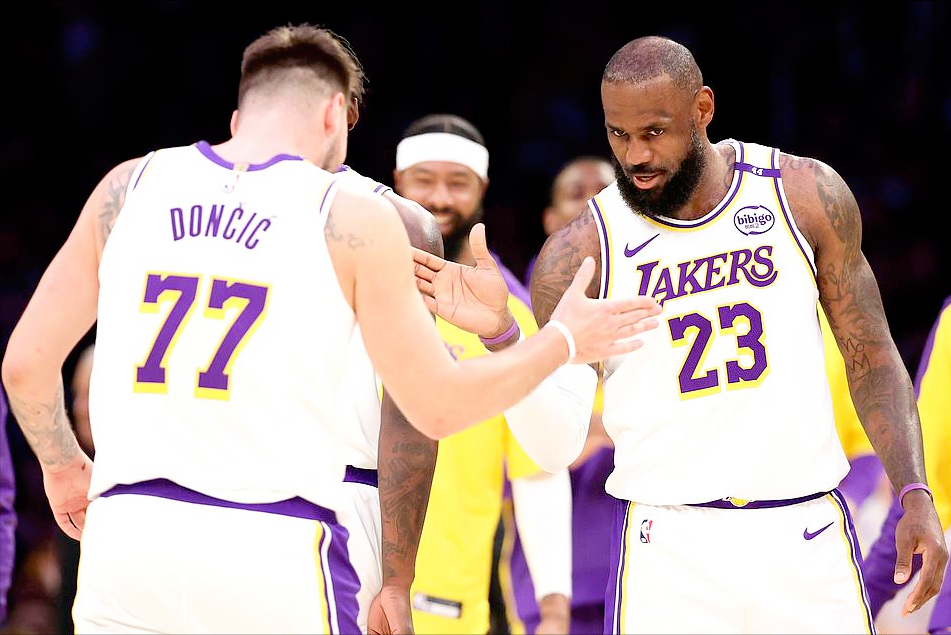 湖人大概率会让海斯顶首发中锋,这套阵容的优缺点跟白纸一样清楚。优点是进攻真能打,东契奇本赛季场均34.5分8.8篮板8.9助攻,状态火热;里夫斯场均也可以贡献27.6分5.5篮板7.3助攻的稳定表现,还有詹姆斯刚复出,得分虽然不高,但串联全队的本事还在;最惊喜的是八村,他今年打出生涯最佳表现,场均15分3.9篮板,56.2%的投篮命中率和48.3%的三分命中率,全都是生涯新高,完全成了外线稳定炮台。
