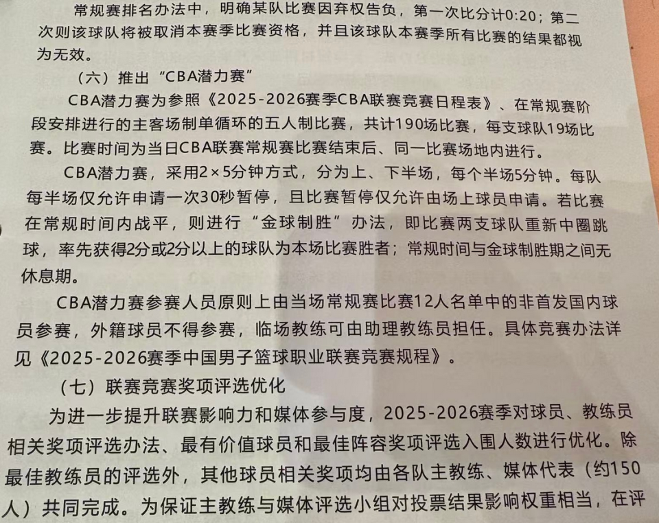 根据此前媒体报道,2025-26赛季的CBA做出重大改革,从过去单节12分钟改为单节10分钟,接轨FIBA国际篮球比赛,而外援政策依然是四节七人次。