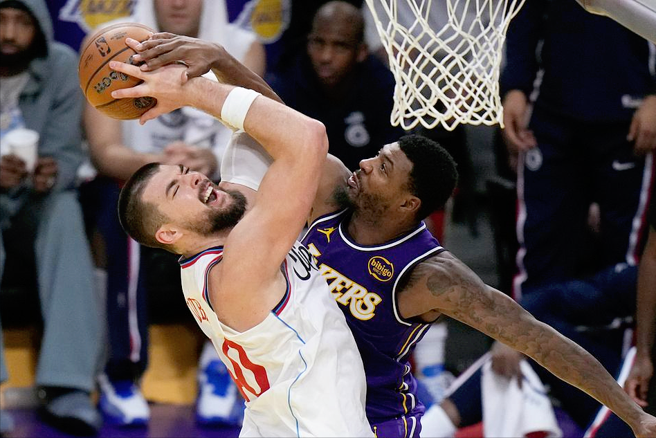 第三节成了哈登的独角戏。快船能倚仗的只有他,单节11分3助攻2抢断,硬生生用一己之力拖着球队往前走。东契奇这节体力下滑,10投只中3球,单节7分,但湖人还是赢了2分,因为祖巴茨彻底崩了。