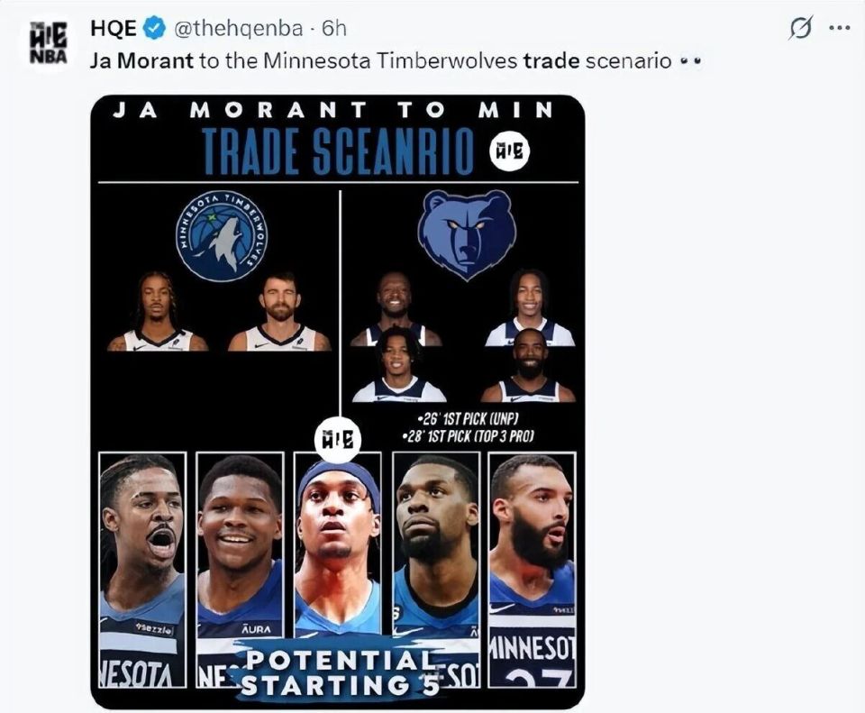牛掰!莫兰特+爱德华兹!美媒建议森林狼6换2