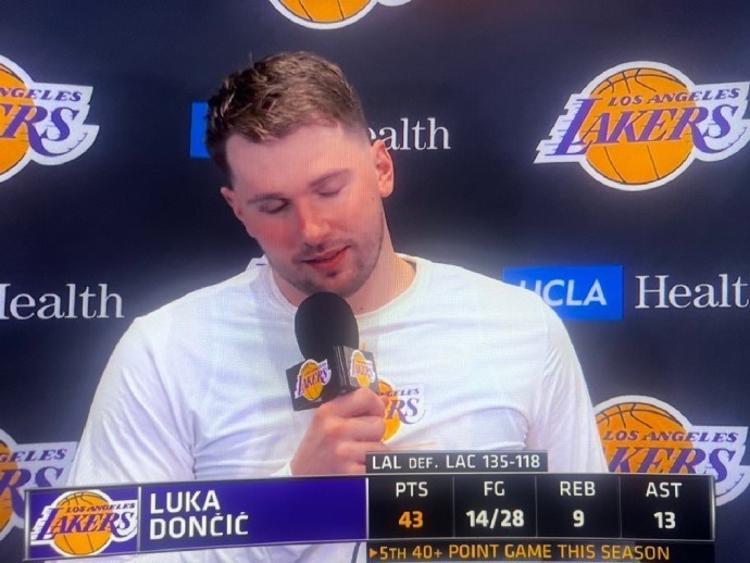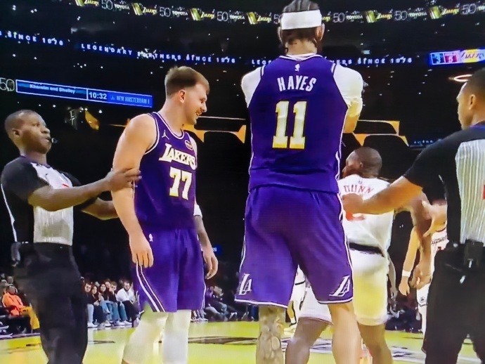 11月26日消息,11月26日结束的NBA杯赛B组小组赛,湖人135-118击败快船。本场比赛,东契奇砍下43分9篮板13助攻,比赛中东契奇和邓恩冲突,海斯马上一把推开对方被吹技术犯规,赛后东契奇表示要替海斯交罚款!