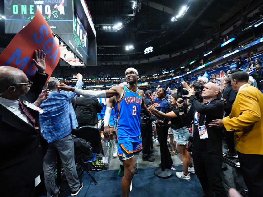 2023-24赛季,亚历山大带领雷霆高歌猛进,场均贡献30.1分5.5篮板6.2助攻2抄截,在例行赛MVP评选中高居第二。