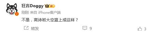 上半场,高诗岩登场11分30秒,3中0,三分2中0,得到0分3篮板1失误1犯规。一次空篮不中成为外界吐槽的焦点。