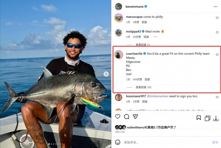 在今天早些时候,西蒙斯在自己社交媒体评论区点赞了网友评论:“你很适合现在的76人队,马克西+埃奇库姆+乔治+西蒙斯+恩比德。”