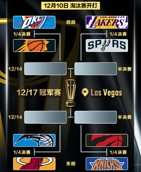 NBA杯八强对阵:湖人vs马刺 雷霆vs太阳 卫冕冠军出局东部乱斗