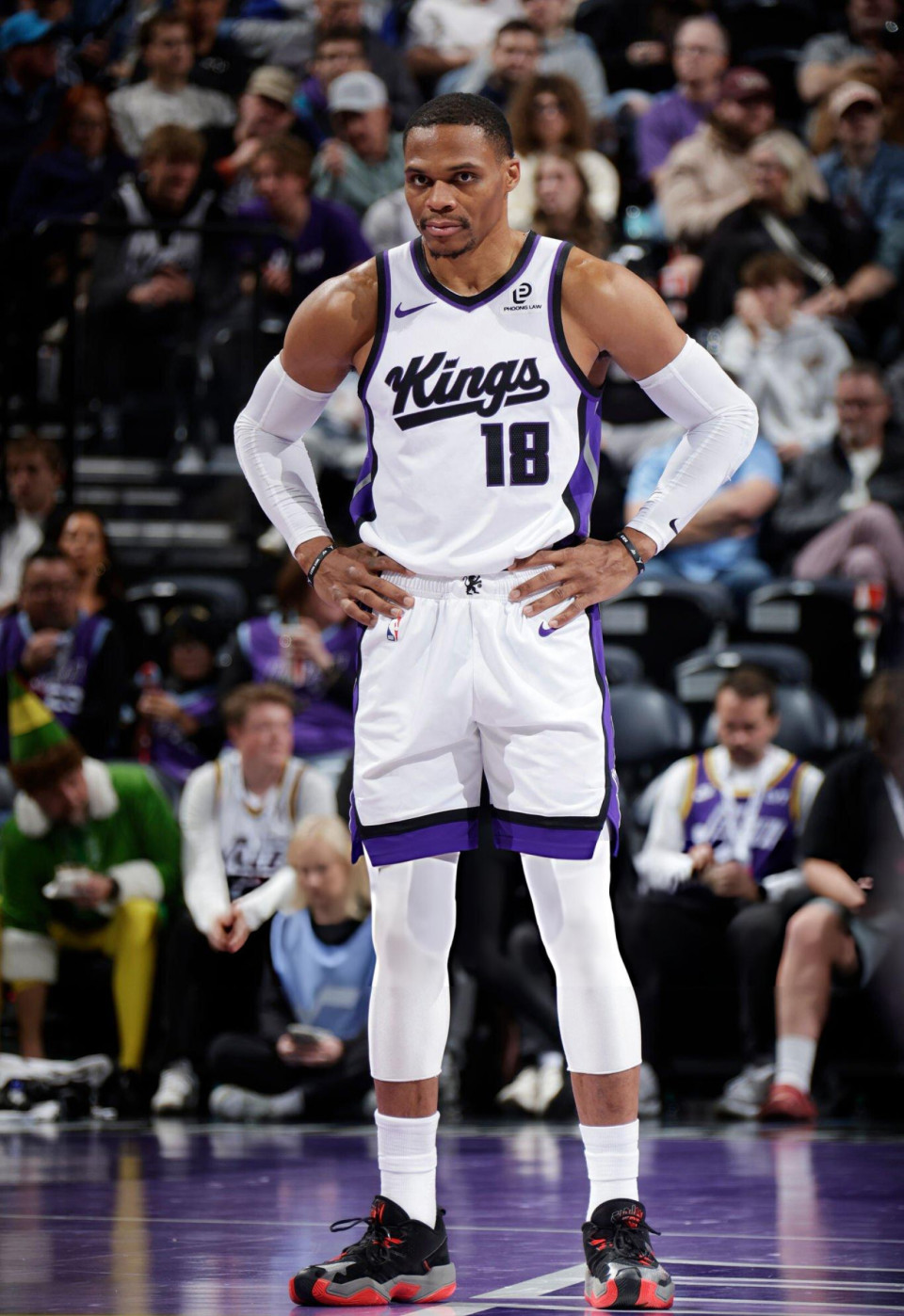 虽然国王队吃到败仗,但是威斯布鲁克的发挥依旧出色。全场比赛,威少一共首发出场33分钟,16投6中,其中三分球5中2,罚球3中2,合计得到16分12篮板14助攻,同时还有4个抢断,仅有3个失误。