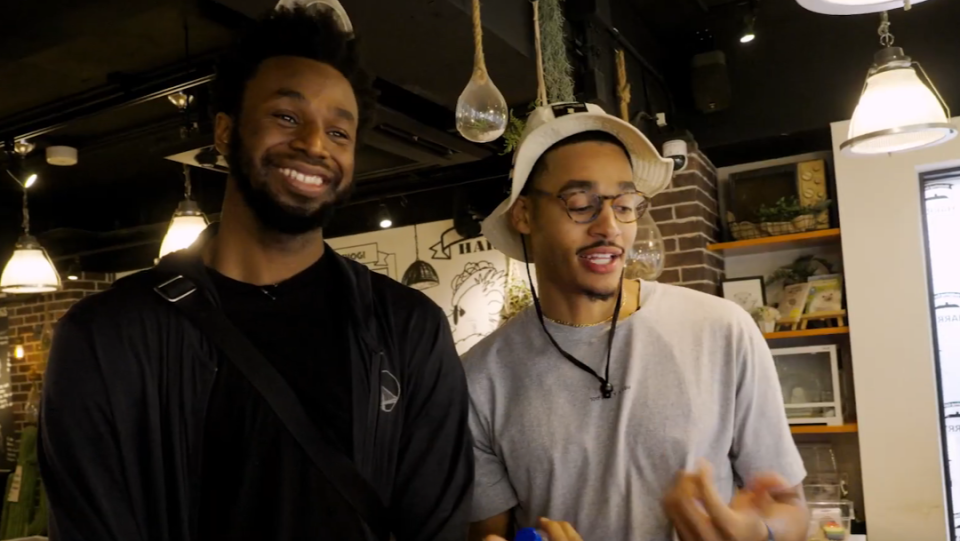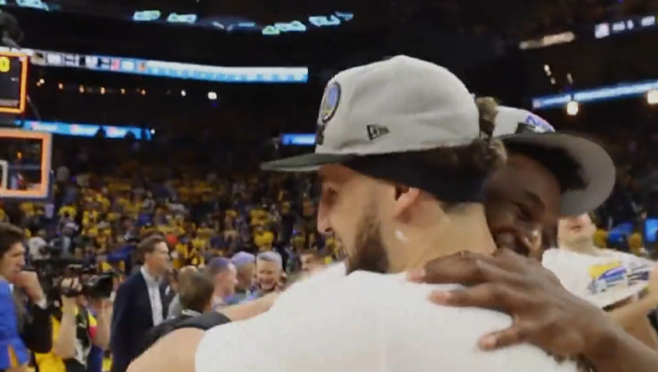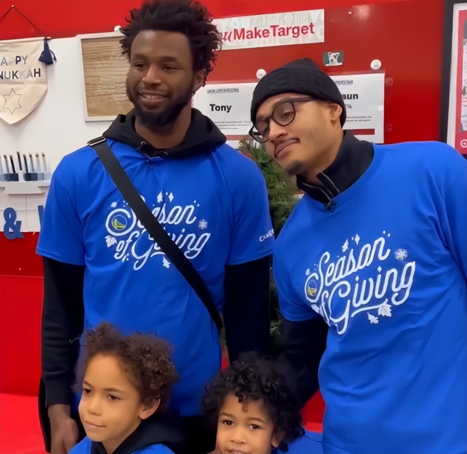 2022年,当他们一起拿下了NBA总冠军的时候,在更衣室喷洒香槟的环节。