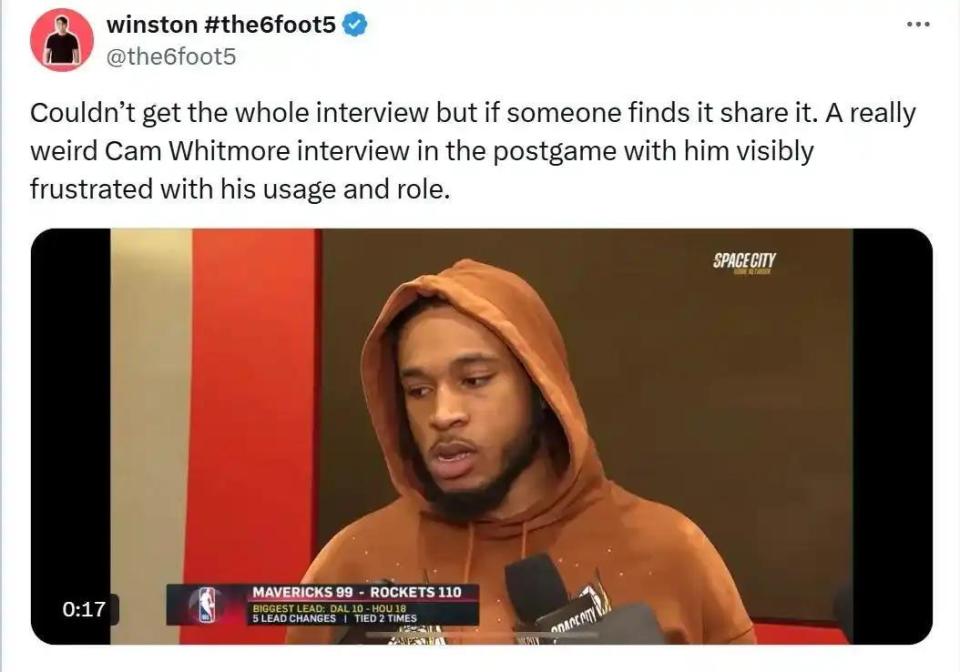 作为21-24年火箭队摆烂重建期间积攒的“休城7子”之一,白魔一度被火箭队与乌度卡寄予厚望,希望他能够成为板凳席第六人,甚至取代杰伦格林成长为球队外线进攻核心。