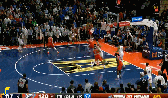 亚历山大回来助攻杰林弧顶命中个人第二个三分,次节4分23秒,雷霆46:40打停太阳。