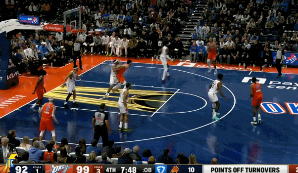 易边再战,切特在禁区内接球就投命中,雷霆第三节五分钟内打了一波16-7,太阳叫停!