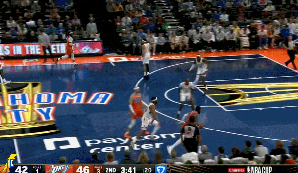 杰林连续投丢,但这下接亚历山大的传球打成2+1!