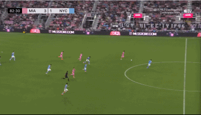 第83分钟,迈阿密国际快速反击,塞戈维亚推进到前场腹地,与阿尔巴做撞墙配合后,塞戈维亚轻松推射破门,4-1,这球阿尔巴的脚后跟助攻非常精彩!之后阿连德又打进一球完成帽子戏法,最终迈阿密国际5-1大胜纽约城,成功晋级总决赛!