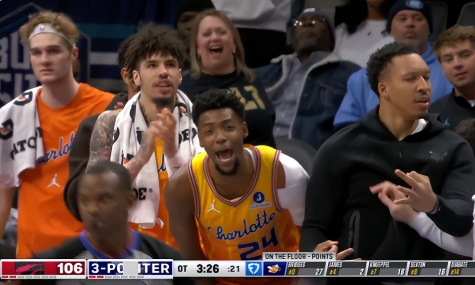 在加时赛还剩3分26秒,迈尔斯-布里奇斯命中了一个反超三分的三分球,这个三分球成为全场比赛的转折点,这一球命中后黄蜂核心拉梅洛-鲍尔在场下疯狂的鼓掌。布里奇斯在加时赛4中4+三分1中1+罚球2中1拿到10分,他一人击败了猛龙全队,猛龙全队加时赛只拿到7分。