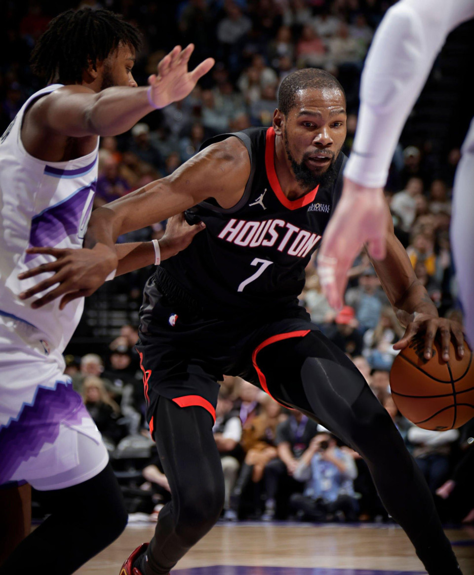 首节比赛刚刚开始,杜兰特便展现出自己良好的手感,他在罚球线附近连续命中,此外还在左侧45度命中一记三分,单节拿到7分3篮板3抢断。次节比赛中,杜兰特的优秀手感还在延续,他在左侧底角和弧顶处连续命中三分,此外还有一次上篮得手以及中投命中,单节再次拿到10分。在杜兰特的带领下,火箭队上半场领先对手19分。