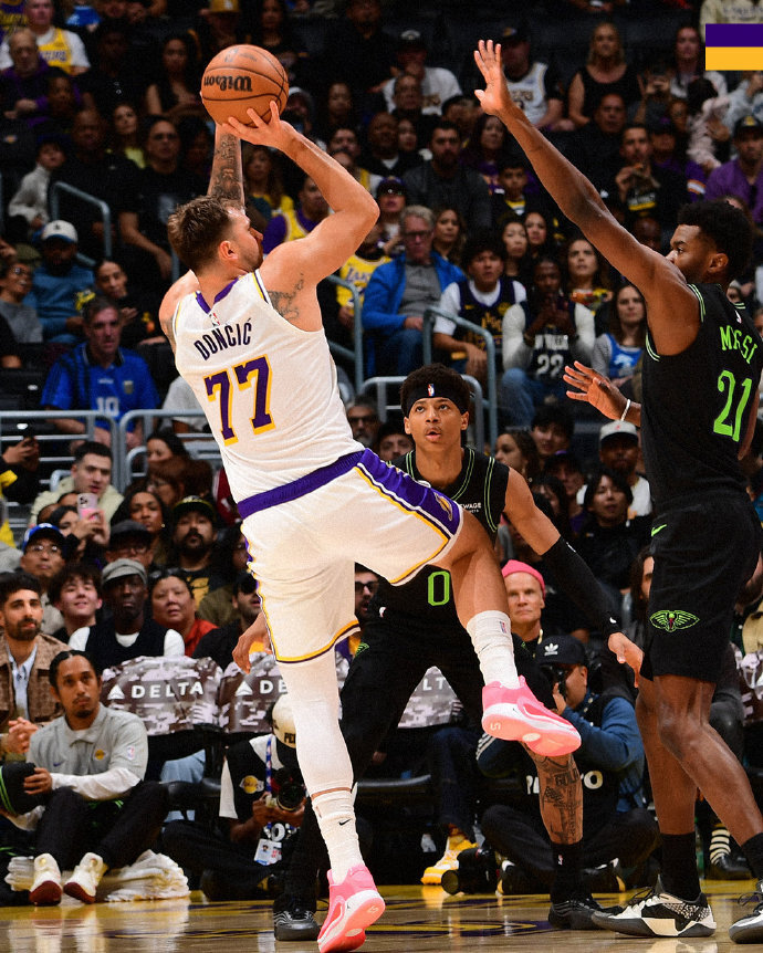 东契奇引领湖人首节20中14高达7成准星,其中三分10中5与罚球14中13,且限制鹈鹕只有25中8的低迷准星。