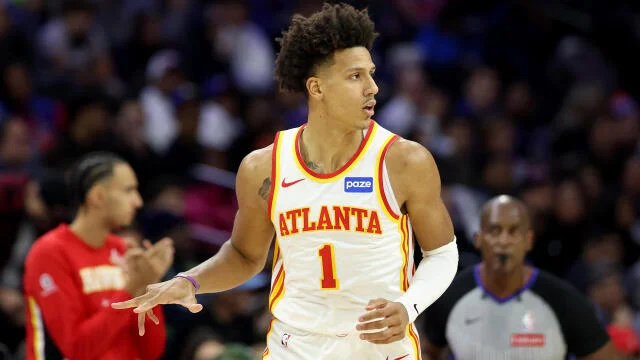老鹰双加时142-134战胜76人,贾伦-约翰逊21投10中,22罚17中,得到41分14篮板7助攻,成为队史首位打出这组数据的球员。