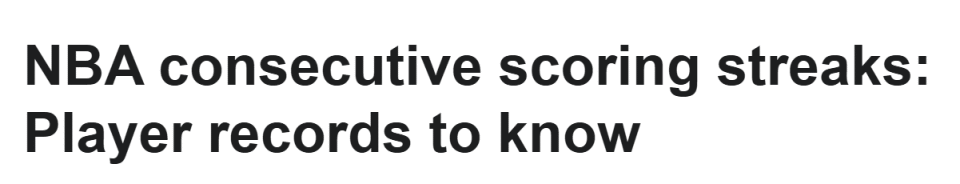 NBA连续得分纪录汇总:詹姆斯连续1295场10+领跑 张伯伦五项霸榜
