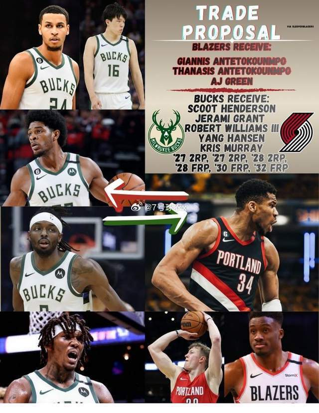 这笔交易的具体模拟如下,开拓者得到:字母哥、字母哥哥、格林雄鹿得到:亨德森、格兰特、罗威、杨瀚森、穆雷2028年首轮签、2030年首轮签、2032年首轮签两个2027年次轮签、2028年次轮签。