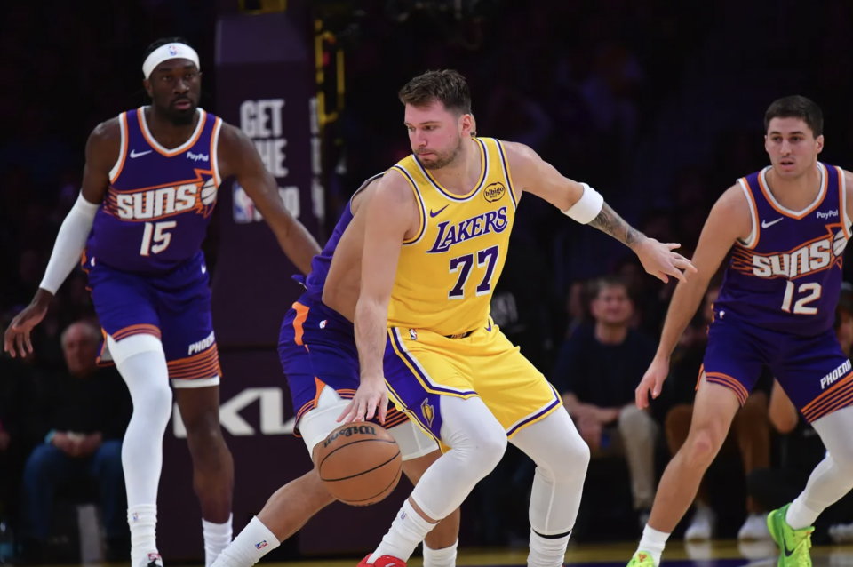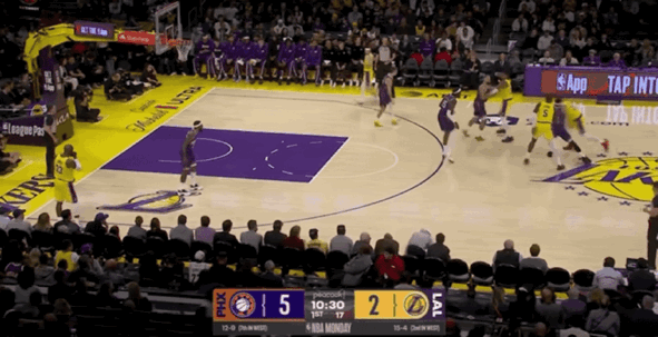 首节比赛,东契奇抛投打进,率先为湖人取得首次运动战进球。东契奇开局就展示不俗的进攻欲望,连续抛投得分,频繁突破给对手内线施加压力,太阳完全没有阻挡东契奇的方法。