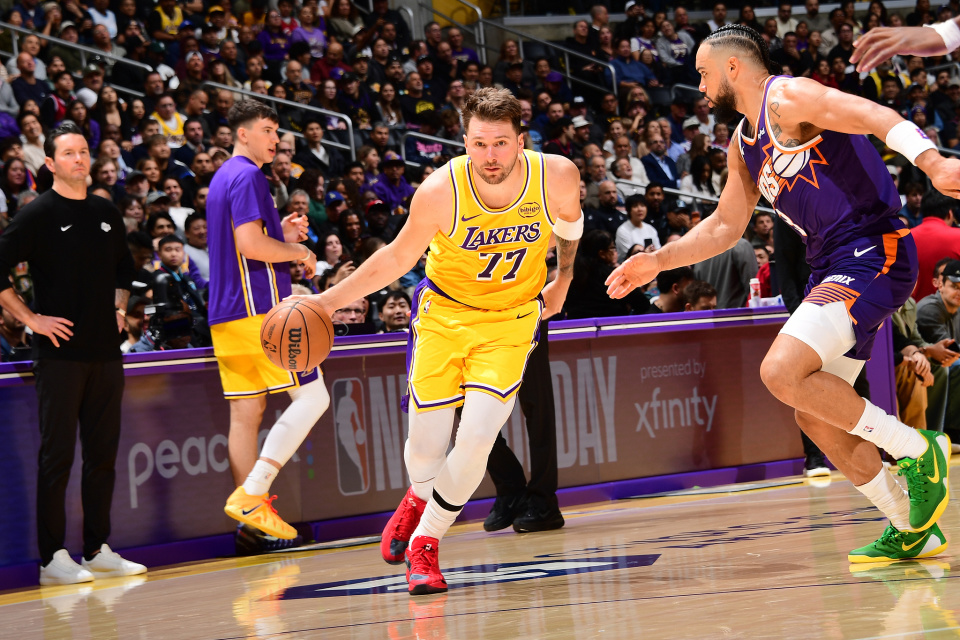 湖人坐镇主场大战太阳,第一节两队展开对攻大战,东契奇首节11投8中爆砍20分扛起湖人进攻大旗,生涯第28次单节20+连创多项纪录;可第二节湖人进攻下滑且单节失误10次,东契奇突然手感全无,而且连续失误被太阳打出反击,湖人单节21-35净输14分。