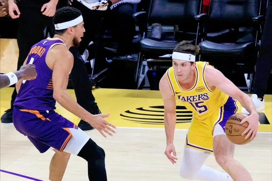 再看里夫斯,今天算是撞墙了。之前的比赛他场均28分,今天面对布克和邓恩的防守,完全找不到节奏,16分里没几个硬解球,全场只造了1次罚球,这对他来说太不正常。太阳主教练奥特的战术太狠,让狄龙去缠东契奇,布克死盯里夫斯,布克伤退后又换古德温补防,里夫斯被防得没了脾气。湖人的基本盘需要他和东契奇同时在线,现在一个掉链子,进攻立马散架。