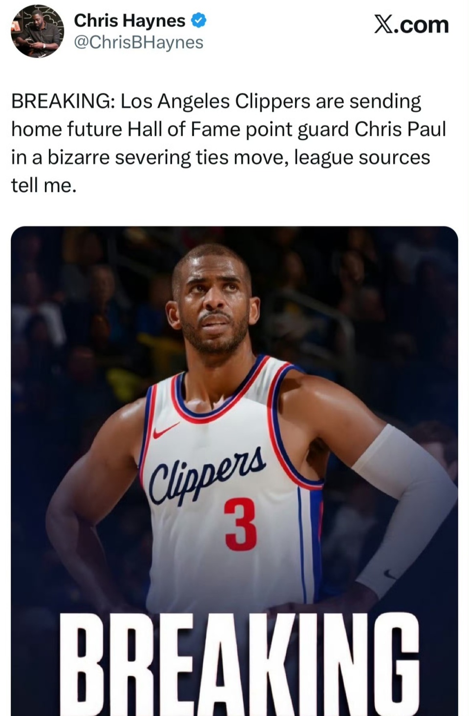 当然,也有可能是快船管理层认为本赛季争冠无望,不想再拖累已经明确今年是生涯最后一季的保罗。
