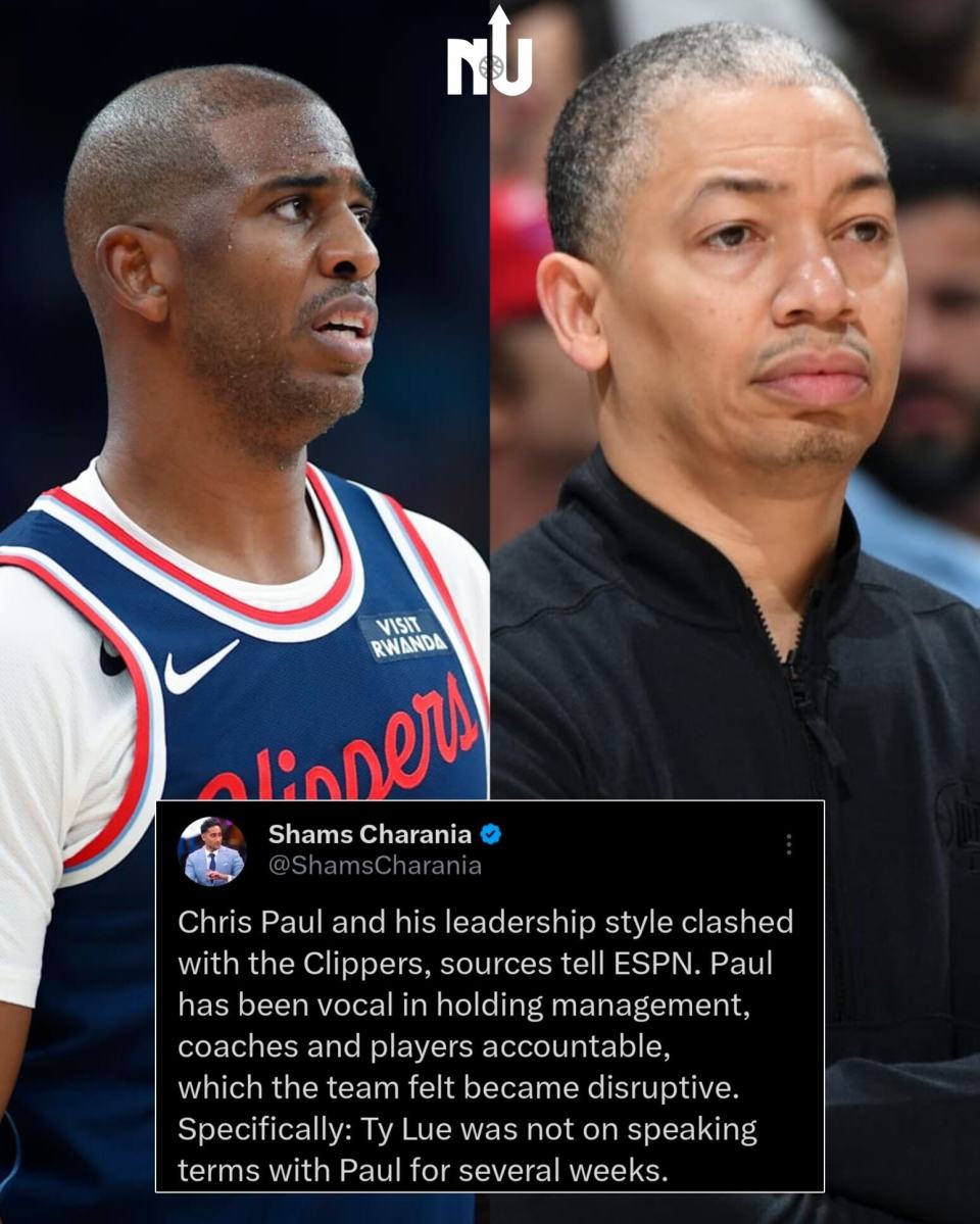 据名记Shams报道,保罗的领导风格与球队有冲突,他直言不讳地要求球员、教练、管理层都要承担责任,这让球队感到不安。快船队主教练泰伦-卢与保罗已经好几周没有交流,快船队认为保罗的风格已经变得具有破坏性。