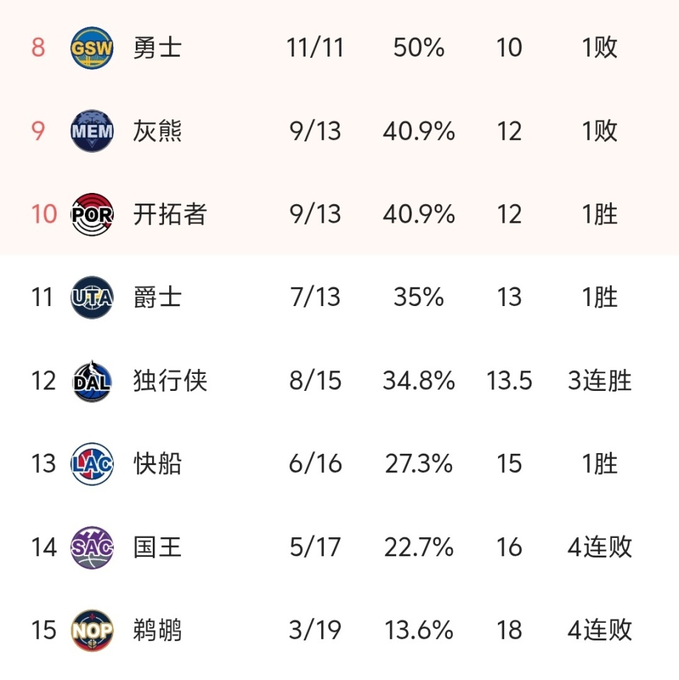 随着快船115-92大胜,独行侠开拓者赢球,西部第10之争越演越烈!