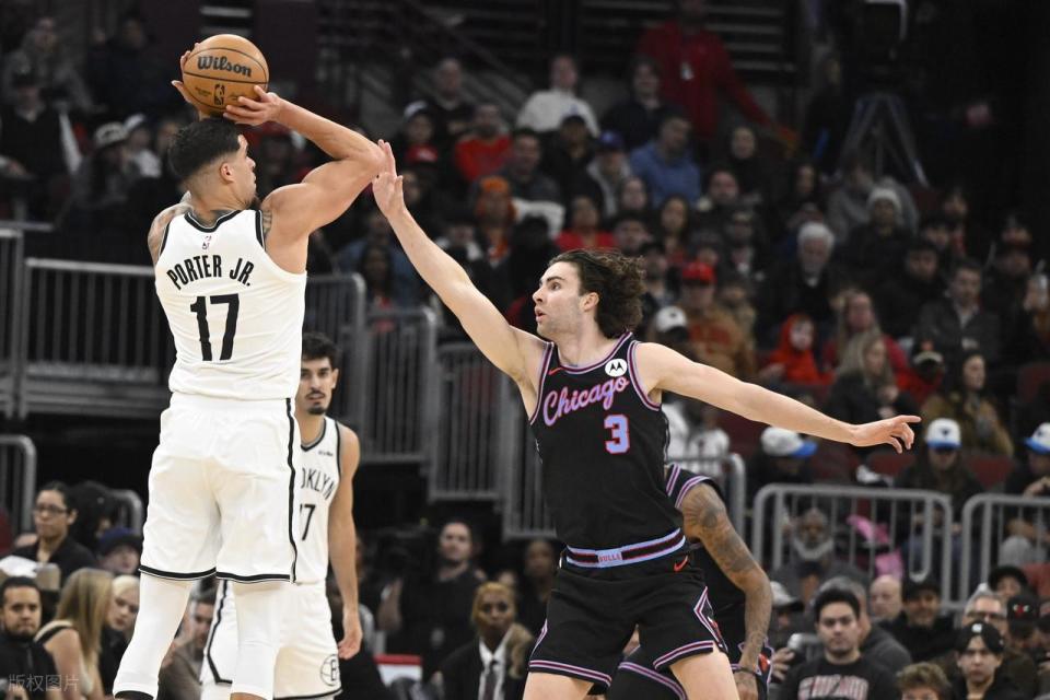 篮网击败公牛,波特今天进攻依旧在线。上半场他12投6中(三分5中1),罚球4中4,拿到17分8篮板2助攻1盖帽。