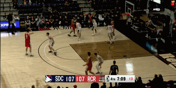 杨瀚森夏季联赛也是这个护框方式,总是想卡住位置让队友捡板。但问题是,这样也会被对手捡到前场篮板。克林根是一个很好的篮板手,他的护框还有拼抢前场板都值得杨瀚森学习。半场战罢,圣地亚哥快船65-64领先混音队。