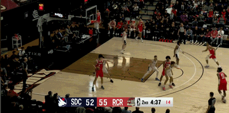第二节杨瀚森贡献了一记精彩的低位单打,利用脚步晃过防守,轻松上篮得手。跟前两场相比,杨瀚森今天更加自信,他在场上时不时指挥队友跑位。不过,杨瀚森的篮板卡位还有提升空间,圣地亚哥快船上半场抢到5个前场板。