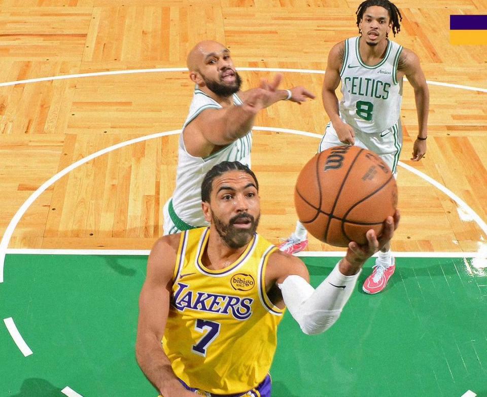 但绿军毕竟也有深厚的强队文化底蕴,而且这个赛季布朗来带队,效果还是不错,布朗作为球队老大也是有两把刷子的。本场比赛,双方在首发阵容上面,湖人这边派出的是,文森特,里夫斯,拉拉维亚,艾顿,八村塁。凯尔特人派出的是布朗,沃尔什,科塔,普理查德和怀特。首节比赛开始,绿军率先拿到球权,沃尔什底角三分一剑封喉,打进本场比赛首个进球,文森特借助掩护的超远三分开火也为湖人开张,科塔禁区吃饼暴扣轻松得手,怀特的弧顶大空位三分球直接开花,拉拉维亚禁区内旱地拔葱放篮同样也有,沃尔什禁区强攻,飞身2+1打成。