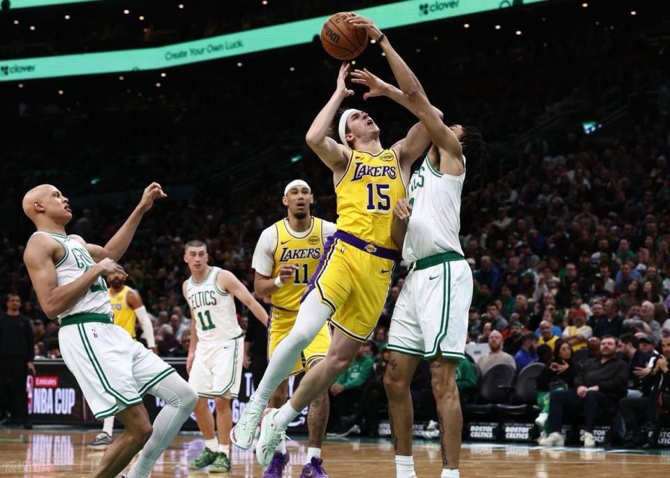 北京时间12月6日,NBA常规赛,湖人客场挑战凯尔特人。本场比赛之前,湖人16胜5负排名西部第2,9胜2负的客场战绩,联盟仅次于雷霆队。东契奇和里夫斯二人,进攻火力拉满,作为联盟场均得分最高的二人组,东契奇场均35分看起来还好,但里夫斯场均29分就有点夸张了,他甚至只是一个落选秀。而老詹本赛季在得分方面,似乎有些力不从心了,但他的组织串联依旧是联盟顶级,在场就能起到积极作用。另一边的凯尔特人队,本场比赛之前,以13胜9负的战绩排名东部第5,虽然塔图姆基本报销,球队又在今夏,失去了这么多优质角色球员。