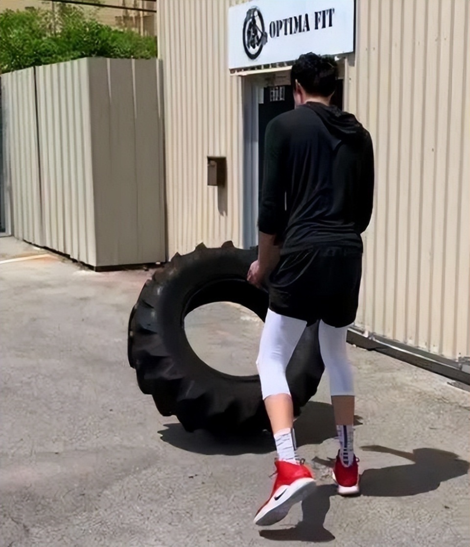 周琦,中国男篮新生代的佼佼者,拥有出色的静态天赋、良好的运动能力和协调性。然而,力量和身体对抗能力一直是他的短板,这也是他未能在NBA站稳脚跟的关键因素之一。在推轮胎训练中,他所使用的轮胎明显比其他几位球员小得多,重量大约只有40公斤左右。