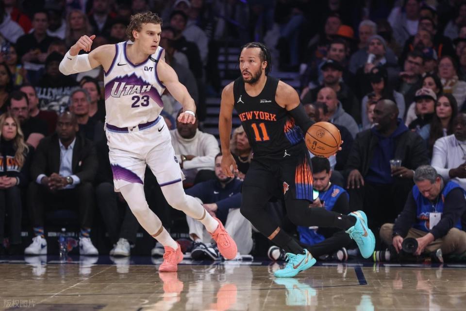 尼克斯大胜爵士,布伦森今天状态火热,进攻端势不可挡。全场比赛,他出战31分钟,投篮17中9,三分9中6,罚球9中9,砍下33分2篮板4助攻,正负值高达+37。