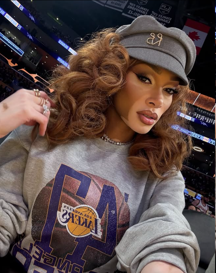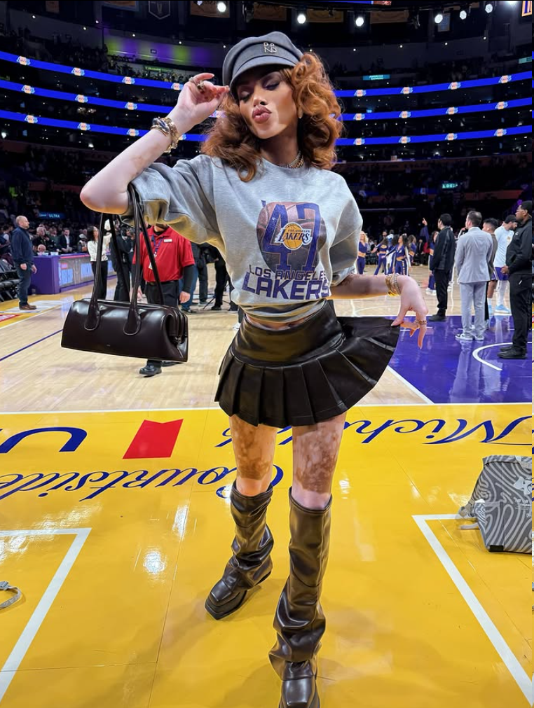 此前,温妮曾晒出自己观战湖人的比赛照片。在照片中,她撩着自己的裙子,在镜头前俏皮的做着动作。