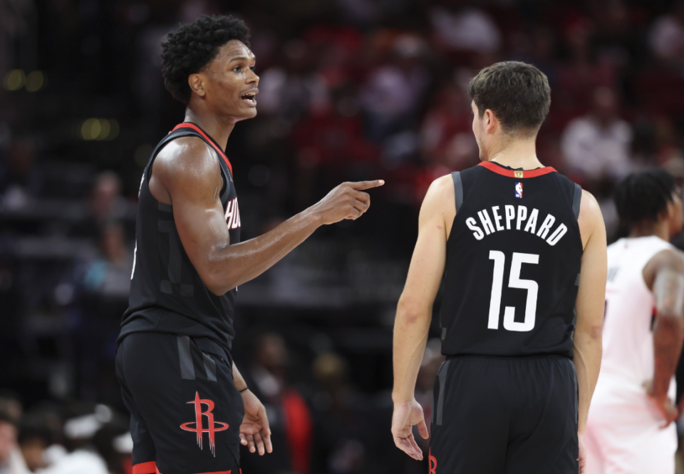 关键阿门也没投射,1、2号位都打不了,如果打3号位可以,但和杜兰特位置重叠;打4号位对抗不太够。还有谢泼德,本赛季成长确实很明显,而且具备攻防一体的属性。但要注意,所谓的攻防一体,是他作为协防人来说,他的判断和大局观很出色,但就他个人来说,高度和横移速度是短板。对手知道他能投,限制他出手,他控运速率远没有达到合格轮转的地步,只不过是火箭整体掩盖了谢泼德的缺陷。还有很容易让人产生错觉的小贾,有投射有防守积极性,但进步不明显,持球能力不足。当然,杜兰特依旧无解。