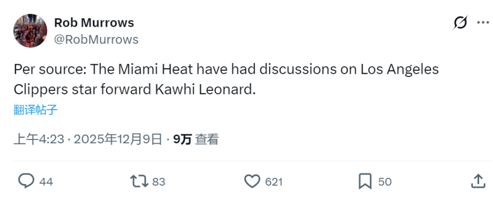 北京时间12月9日,据NBA记者Rob Murrows报道,消息人士透露,热火内部讨论了如何引进快船球星伦纳德。热火认为,伦纳德交易价值正处在低谷,球队不需要付出太大代价就能得到他。ESPN记者Brian Windhorst表示,伦纳德已经是负价值。