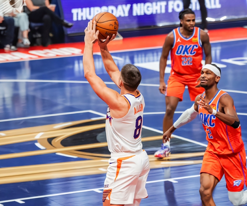 太阳队遭遇了一场彻头彻尾的惨败,他们狂输49分,此役布克继续缺阵,雷霆三巨头亚历山大、霍姆格伦、杰伦威廉姆斯都首发出战,雷霆队第一节就轰出了38-23的比分,第二节打完时他们已经领先了26分,亚历山大、霍姆格伦和杰伦威的效率都太高了,下半场双方就是走过场,太阳队的狄龙布鲁克斯手感很差,面对雷霆,狄龙也不好使了,最终雷霆取得了胜利,成功晋级NBA杯4强!