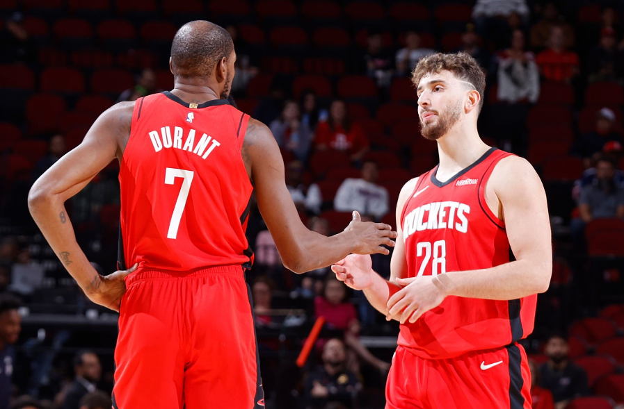 火箭:申京22分15篮板5助攻4抢断,阿门20分9篮板8助攻,小史密斯18分10篮板4助攻,杜兰特16分3助攻,奥科吉8分,阿隆-霍勒迪13分,谢泼德10分4篮板,亚当斯4分6篮板,卡佩拉4分2篮板