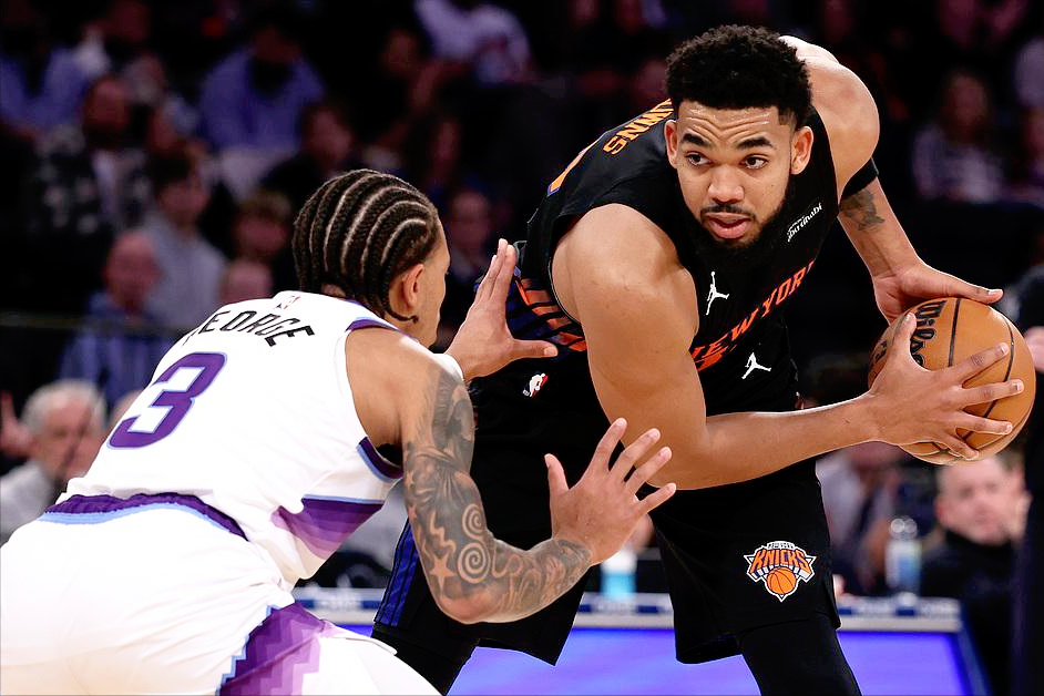 再看内线核心唐斯,他场均能拿22.1分12个篮板,还能场均命中两记三分,是布朗教练五外战术的核心支点。唐斯的空间属性,为布伦森和布里奇斯的空切创造了巨大的空间。虽然防守一直是唐斯的短板,但在本赛季他展现出了更积极的态度,场均能抢下8.8个防守篮板,相较于上赛季,防守端的专注度明显提升。