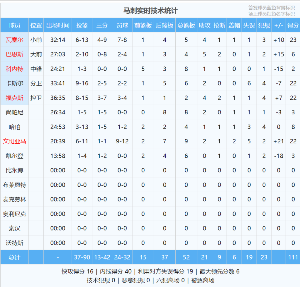马刺四人得分20+:瓦塞尔23分5板4助、文班亚马22分9板2助2帽、福克斯22分2板4助2断、卡斯尔22分6板2助。亚历山大空砍29分4板5助。决赛时间是12月17日上午9点半,马刺vs尼克斯!赛后文班表示,自己就是联盟最佳球员!最后看看比赛数据,说说你的心情: