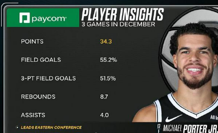 近四场比赛小波特场均狂轰34.3分7.5板3.8助1.5断炸裂数据,本赛季至今场均26.3分7.4板3.2助,投篮命中率50.1%,场均以40.3%命中率扔进3.7记三分球,篮网暂时以6胜18负排名东部第13。