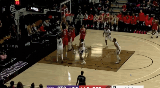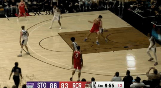 这一节还剩0.5秒时,队友把球发到瀚森手上,他第一时间把球抛出,竟然神奇地打板三分命中,可惜裁判回放后确定这一球超时无效,瀚森也露出了轻松的笑容。