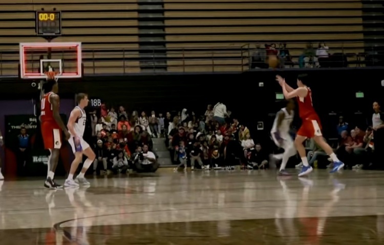 第三节比赛中,杨瀚森完成一次自投自抢补篮得手,随后在篮下单打对手命中投篮。非常遗憾的是,杨瀚森在节末命中一记0.5秒压哨三分出手,可惜稍微超时不算。