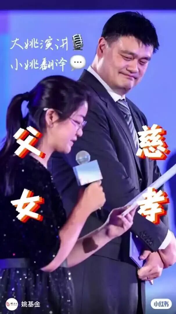 近日,上海的姚基金慈善晚宴,姚明带了15岁女儿姚沁蕾一起出席,一口流利的英语为父亲姚明担任现场翻译,近2米的身高、沉稳大方的表现引发全网关注,父女同台完成致辞后默契击掌。