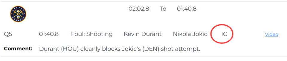 第一次是错判,发生在距离比赛结束还有1分40秒。约基奇背打申京,转身杀入内线出手,杜兰特上前打掉球,被裁判吹防守犯规,给了约基奇罚球机会。裁判报告指出,杜兰特这一球没有犯规,是一次干净的盖帽。这次错判,掘金获利,火箭吃亏。
