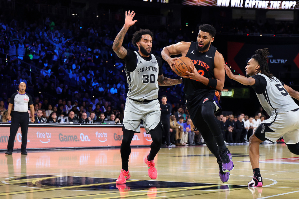 第三节尼克斯一度落后两位数,但他们顽强抵抗,三节打完尼克斯89-94落后5分,布伦森、唐斯等球员集体带队保持悬念;末节尼克斯一波15-2反超比分,之后一直压制马刺,最终124-113击败马刺,尼克斯夺得杯赛冠军,全队激情庆祝。