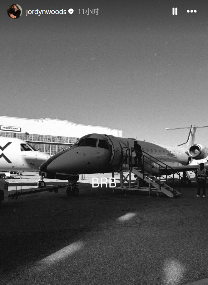 在照片中,约迪-伍兹晒出“登机照”,并且写道:“很快回来”。
